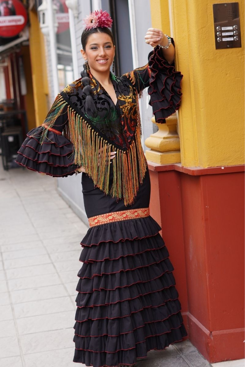 Nuestro traje de flamenca Azabache está confeccionado en popelín de alta calidad y diseñado para realzar la silueta y acompañar el movimiento natural del cuerpo al bailar o caminar. Es una prenda cómoda, fresca y resistente, pensada para largas jornadas de feria, romerías o cualquier celebración en la que el traje de flamenca cobra protagonismo. Cada patrón se estudia cuidadosamente para lograr un equilibrio perfecto entre tradición y estilo contemporáneo.